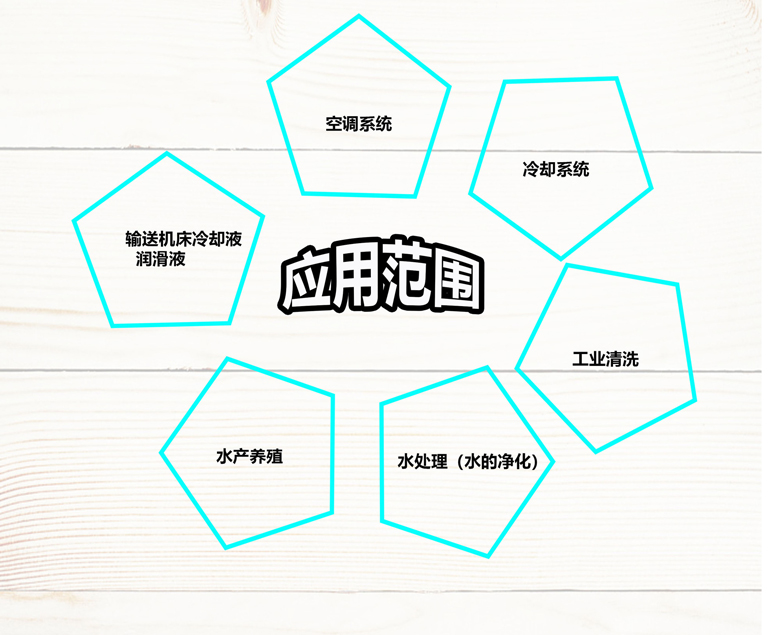 空調系統、冷卻系統、工業清洗、水處理(水的凈化)、水產養殖、施肥/計量系統、環境應用、供水和增壓